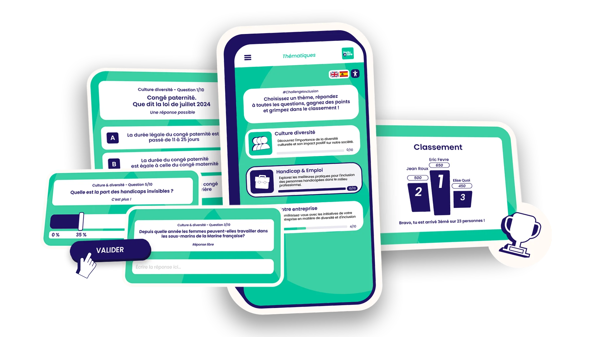 IncluScore offre une gamme diversifiée de modes de quiz pour enrichir l’expérience d’apprentissage de vos collaborateurs.